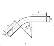 重量(Kg)=[0.0433(D-T)TRθ]/100000+L(雙端直管段重量) Weight/kg=[0.0433(D-T)TRθ]/100000+L(Weight of Double Sides Straight Length) |